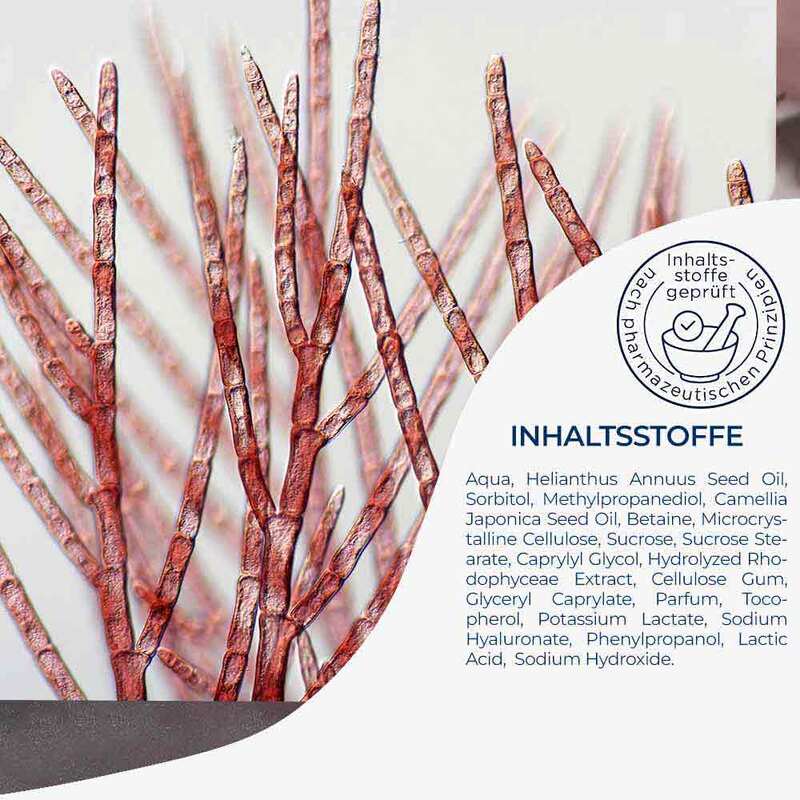 Aqua, Helianthus Annuus Seed Oil, Sorbitol, Methylpropanediol, Camellia Japonica Seed Oil, Betaine, Microcrystalline Cellulose, Sucrose, Sucrose Stearate, Caprylyl Glycol, Hydrolyzed Rhodophyceae Extract, Cellulose Gum, Glyceryl Caprylate, Parfum, Tocopherol, Potassium Lactate, Sodium Hyaluronate, Phenylpropanol, Lactic Acid, Sodium Hydroxide.