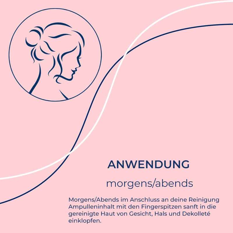 - Ampulleninhalt mit den Fingerspitzen sanft in die gereinigte Haut von Gesicht, Hals und Dekolleté einklopfen.