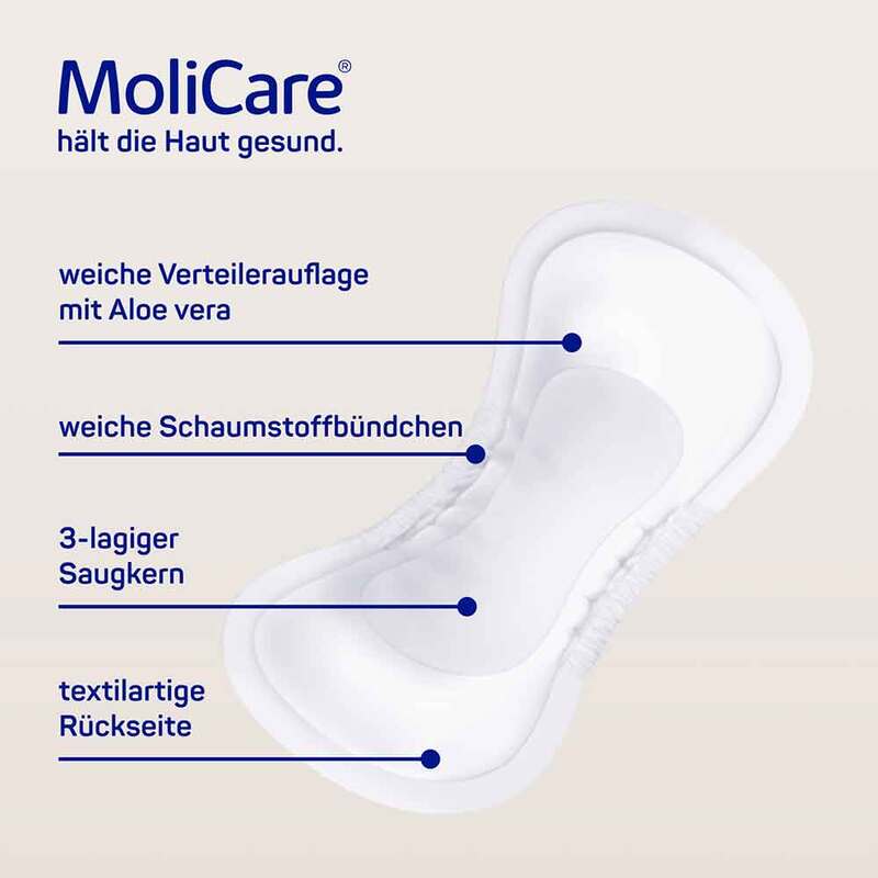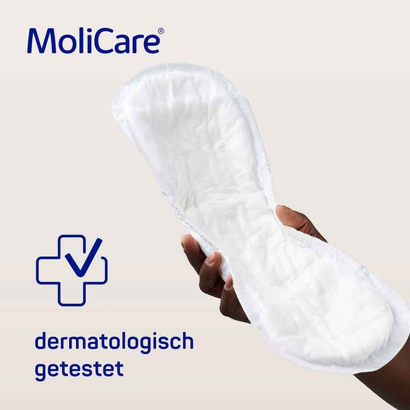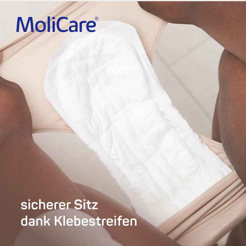 MoliCare's dermatologisch getestete Inkontinenzeinlagen für Frauen helfen, Hautirritationen im Intimbereich zu verhindern und die Hautgesundheit zu erhalten. Diese flexiblen Inkontinenz-Einlagen für Frauen werden in der Mitte Ihrer Unterwäsche platziert und bieten Bewegungsfreiheit.