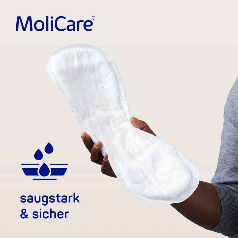 Die MoliCare premium lady Pads Inkontinenzauflagen für Frauen sind bis zu 97 % trockener als die vorherigen MoliCare premium lady Pads, dank der neuen, patentierten MoliCare SkinGuard® Saugkörpertechnologie.
