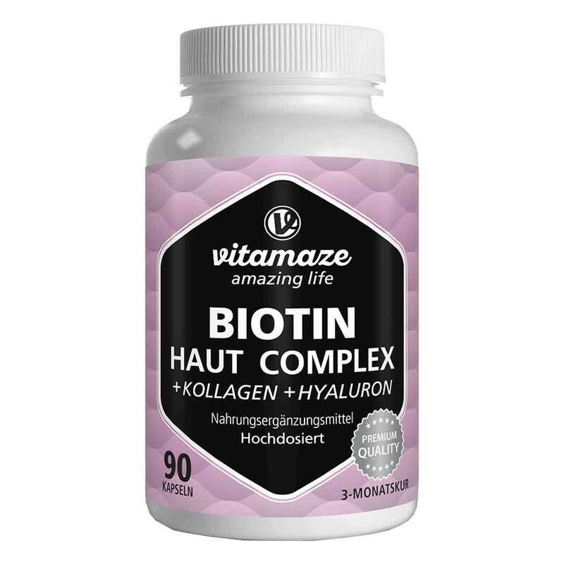 Biotin Haut Komplex hochdosiert + Kollagen Kapseln, 90 St