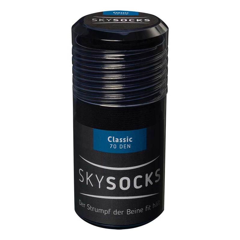 Der SKYSOCKS Classic begeistert mit seinem geschmeidigen, glatten Maschenbild. Das Tragegefühl ist durch das elastische Garn weich und angenehm. Die sanfte Stützwirkung der SKYSOCKS Classic entlastet die Beine und hält sie vital und fit.
