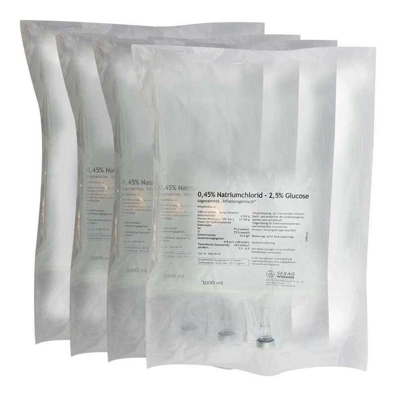 0,45% Natriumchlorid 2,5% Glucose Infusionslösung Pl.Beutel , 4X3000 ml