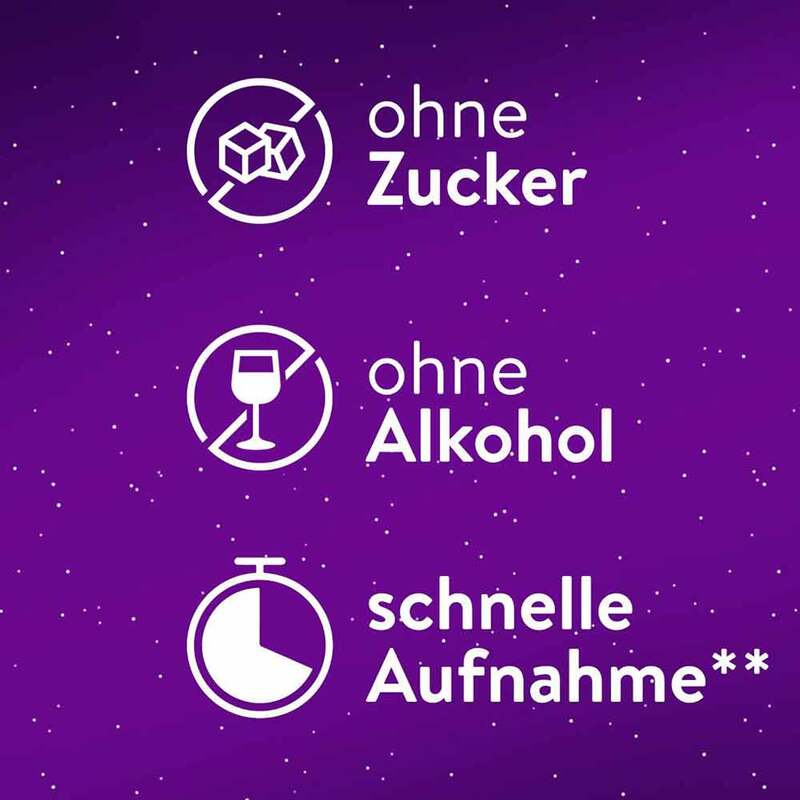 Demineralisiertes Wasser; Stabilisatoren: Pflanzliches Glycerin, Sorbitsirup; Konservierungsstoff: Kaliumsorbat; Melatonin; Säureregulator: Citronensäure; Natürliche Aromen; Lavendelöl (Lavandula angustifolia); Süßungsmittel: Sucralose.
