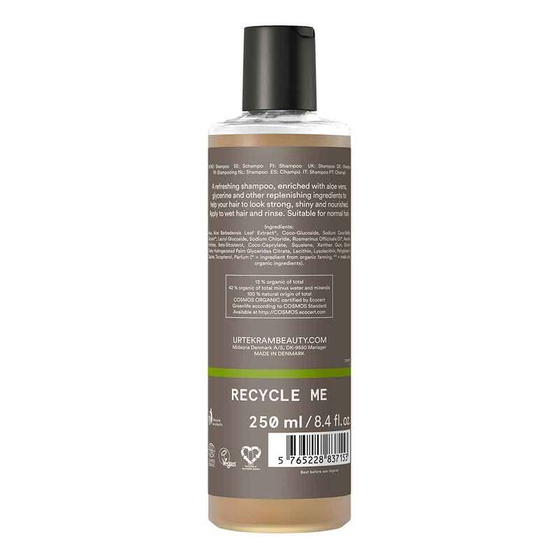 Vitalisierendes Bio-Rosmarinöl hilft, das Haar von der Wurzel bis in die Spitzen zu stärken, während Bio-Aloe Vera, Squalen und Glycerin Feuchtigkeit spenden