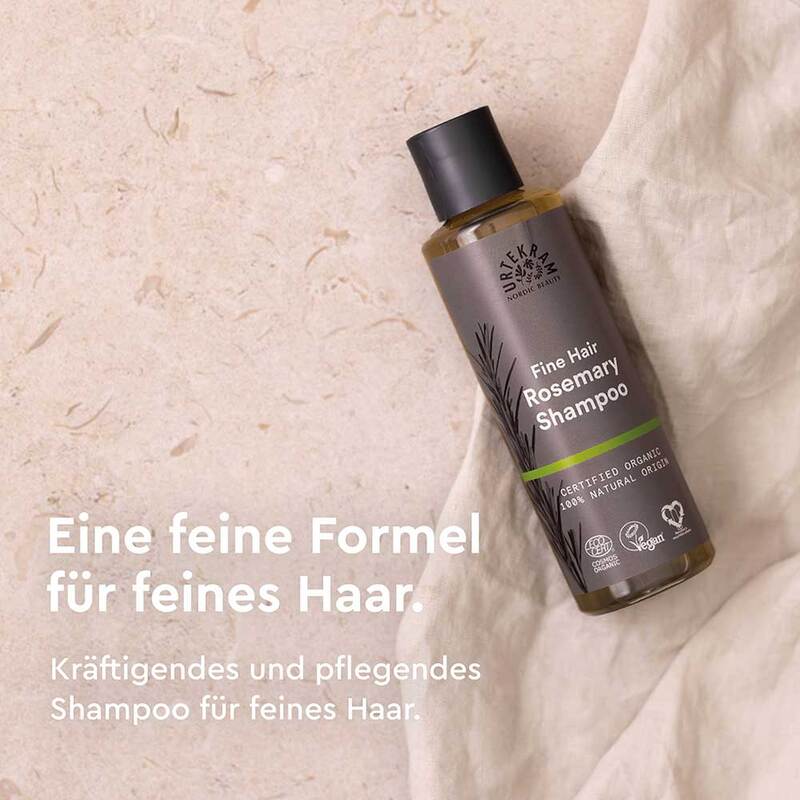 Das würzig-frisch duftende Rosemary Shampoo schenkt feinem Haar neue Spannkraft.