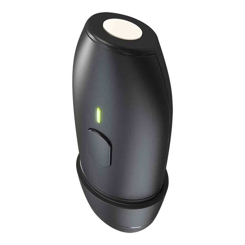 - Nach Betätigen der Drucktaste beginnt die Aufheizphase. Während der Aufheizphase wird die keramische Kontaktfläche auf eine Temperatur von ca. 51 °C erwärmt. Sobald diese Temperatur erreicht ist, erfolgt eine Behandlung von 3 Sekunden. Während der Behandlung leuchtet die LED. Das Gerät schaltet sich nach der erfolgten Behandlung automatisch ab. Zu Beginn der Aufheizphase und am Ende der Behandlung ertönt zusätzlich ein akustisches Signal.
