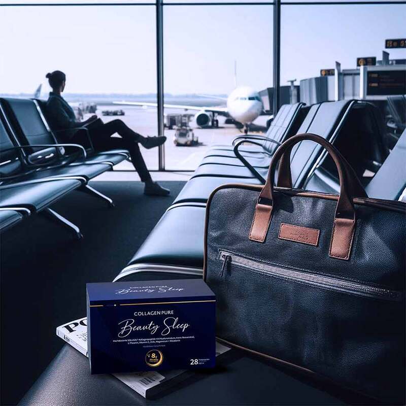 - Nahrungsergänzungsmittel mit Kollagen, Melatonin, Hyaluronsäure, L-Theanin, Vitamin C und Mineralstoffen