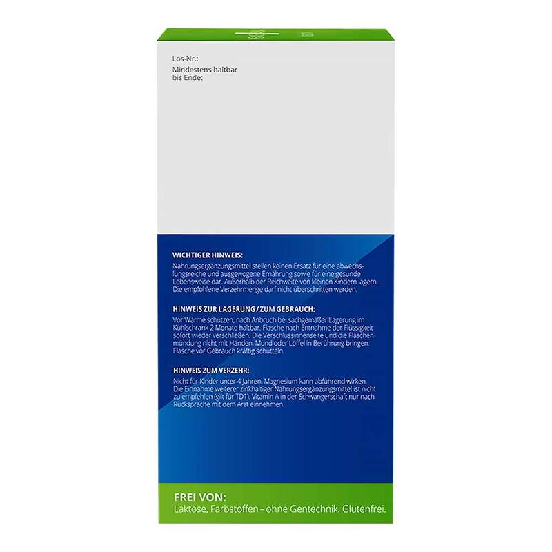 Nicht für Kinder unter 4 Jahren. Magnesium kann abführend wirken. Die Einnahme weiterer zinkhaltiger Nahrungsergänzungsmittel ist nicht zu empfehlen. Vitamin A in der Schwangerschaft nur nach Rücksprache mit dem Arzt empfehlen. Personen, die sich einem Labortest unterziehen müssen, sollten das ärztliche Personal darüber informieren, dass sie Biotin einnehmen oder kürzlich eingenommen haben.