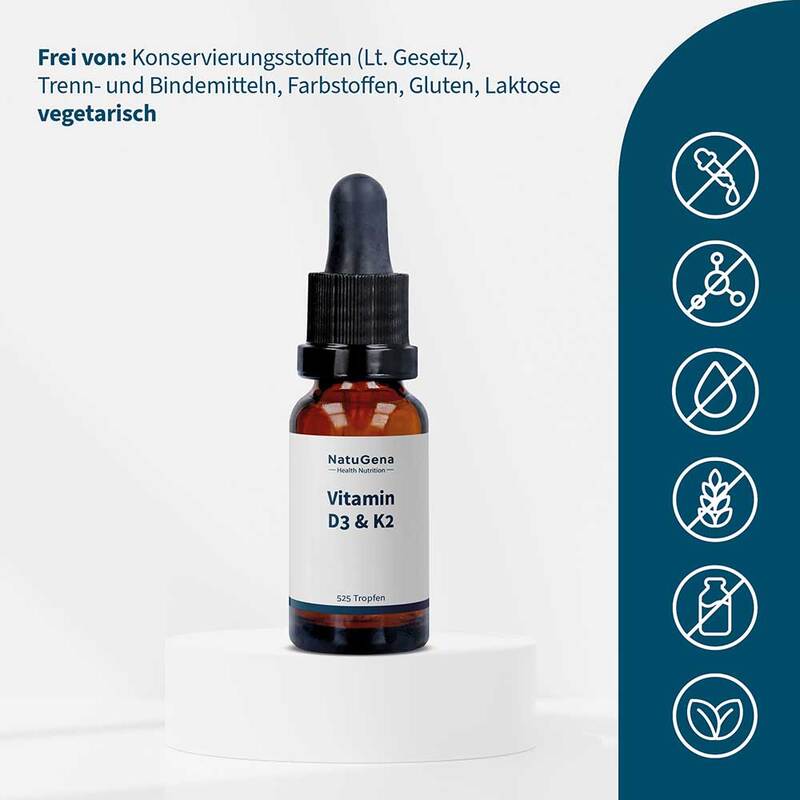 - mit 20 µg Vitamin K2 in der bioaktiven MK-7, all-trans-Form pro Tropfen