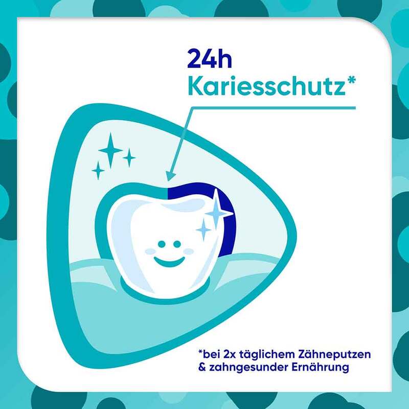 Wussten Sie, dass der Zahnschmelz neuer, bleibender Zähne bis zu 3 Jahre benötigt, um seine volle Stärke zu entwickeln? Deshalb ist es so wichtig, die Zähne Ihres Kindes mit einer Zahnpasta zu pflegen, die sie vor säurebedingtem Zahnschmelzabbau schützt und den wertvollen Zahnschmelz sanft kräftigt und remineralisiert.