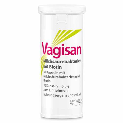 Vagisan Milchsäurebakterien mit Biotin ist ein Nahrungsergänzungsmittel in Kapselform. Es enthält Milchsäurebakterien (mindestens 1 Milliarde gefriergetrocknete lebensfähige Milchsäurebakterien pro Kapsel); dabei handelt es sich um Lactobacillus reuteri, RC-14 und Lactobacillus rhamnosus, GR-1 und das essentielle Vitamin Biotin.