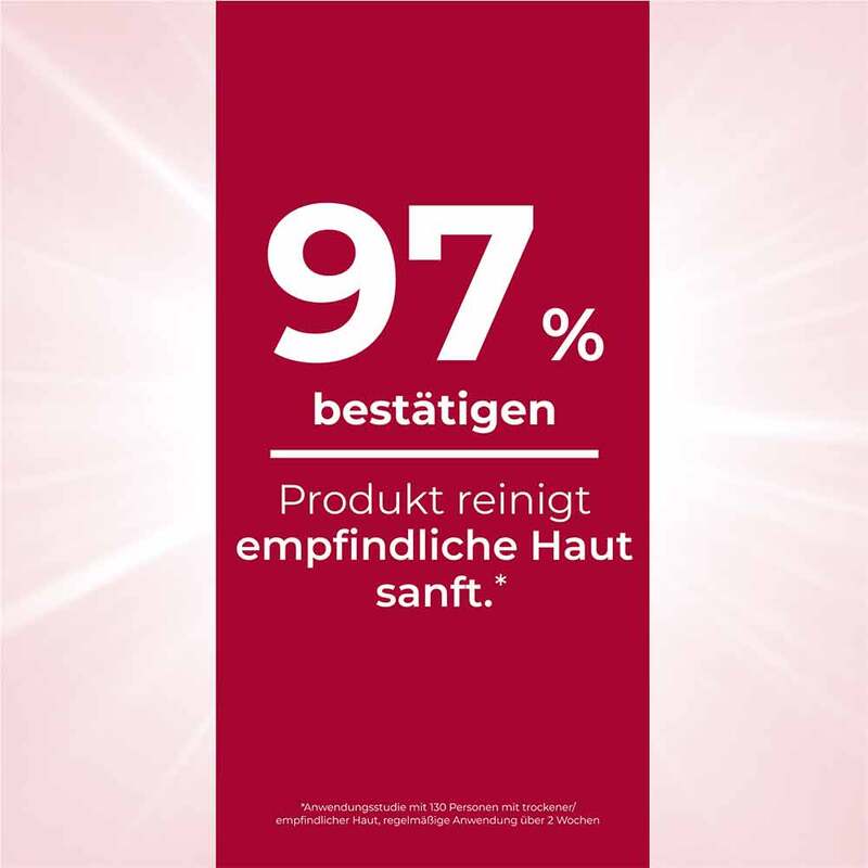 Die milde, seifenfreie Formel mit Dexpanthenol und Pflegeölen versorgt die Haut langanhaltend mit Feuchtigkeit.