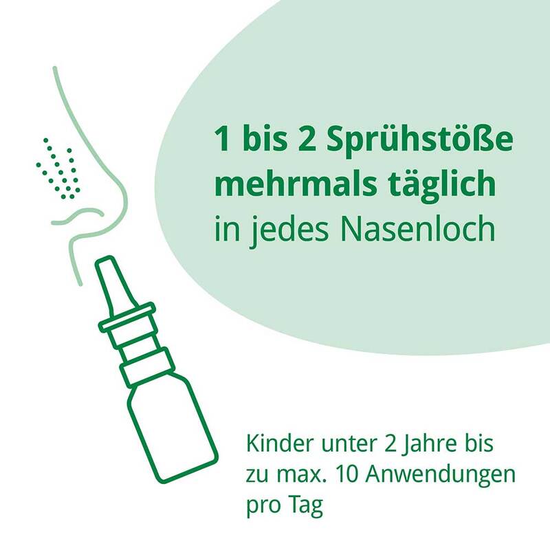 Sofern nicht anders verordnet, 1 bis 2 Sprühstöße mehrmals täglich in jedes Nasenloch geben. Bei Kindern unter 2 Jahren maximal 10 Anwendungen pro Tag.