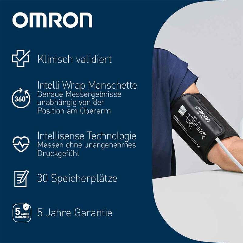 - Mit Intelli Wrap Manschette für genaue Ergebnisse unabhängig von der Position am Oberarm