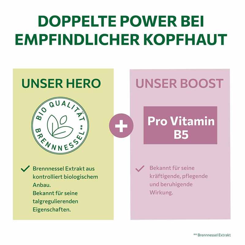Die Formel mit einer Kombination aus Brennnessel und Pro-Vitamin B5 - stärkt und beruhigt juckende Kopfhaut