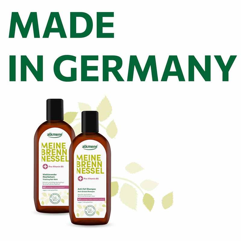 Der Alkmene meine Brennessel vitalisierende Haarbalsam mit der Kombination aus Brennnessel und Pro-Vitamin B5 stärkt und beruhigt juckende Kopfhaut.