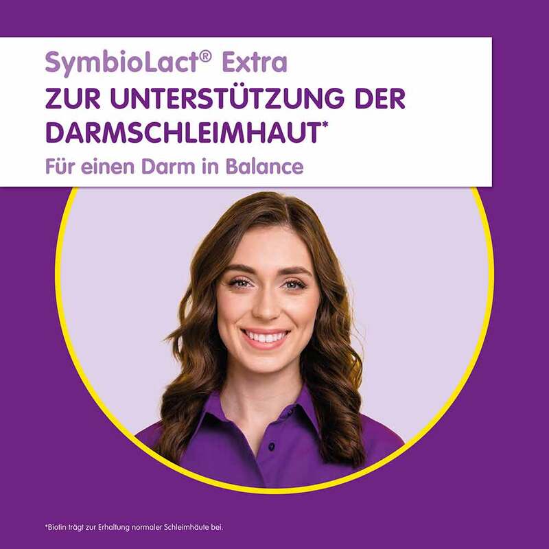 Biotin trägt zur Erhaltung normaler Schleimhäute (z. B. Darmschleimhaut) bei. SymbioLact Extra ist für Kunden, die