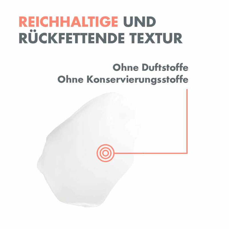 Ihre innovative Formulierung mit I-modulia, einem postbiotischen Aktivstoff aus dem Avene Thermalwasser, erhält das Mikrobiom im Gleichgewicht. Entzündungen werden verringert, der durch trockene Haut verursachte Juckreiz wird reduziert. Das Avene Thermalwasser in dem Konzentrat sorgt für zusätzliche Beruhigung und Pflege. Zudem wird die Barrierefunktion der Haut wiederhergestellt, das Eindringen von Fremdstoffen wird reduziert und eine Austrocknung verhindert.