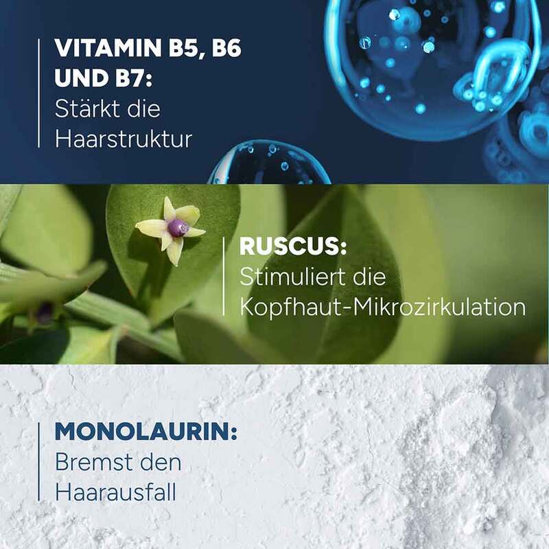 Medikamente wie Minoxidil sind weit verbreitet und können helfen, indem sie den Haarwachstumszyklus beeinflussen und die Haarausfallrate reduzieren. Die Ducray Produkte bei chronischem Haarausfall können diese Form der Therapie optimal ergänzen.Inhaltsstoffe