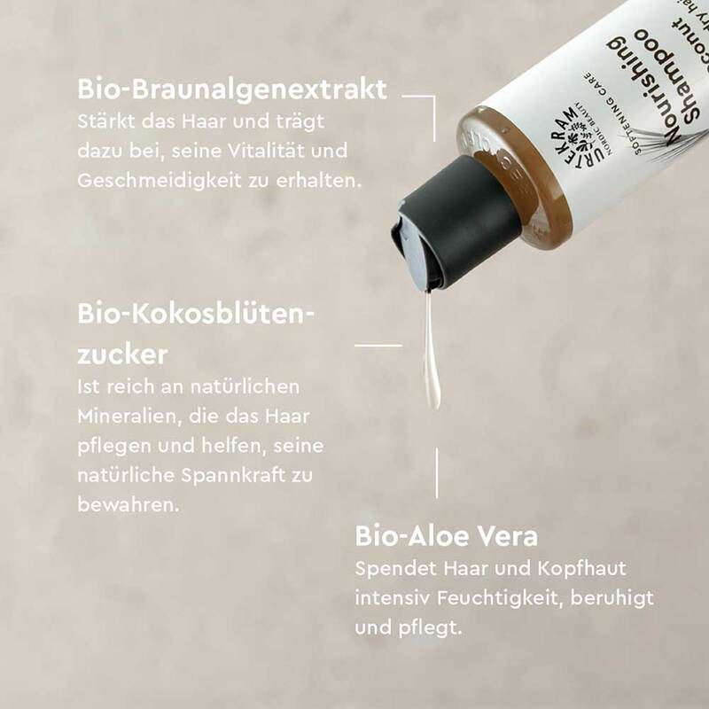 Bio-Kokosblütenzucker, mineralstoffreicher Bio-Braunalgenextrakt und beruhigender Gänseblümchenextrakt versorgen das Haar mit intensiv pflegenden Nährstoffen. Bio-Aloe Vera spendet eine Extraportion Feuchtigkeit.