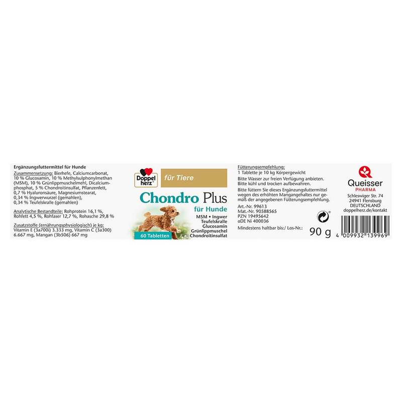Doppelherz für Tiere Chondro Plus ist ein Ergänzungsfuttermittel für Hunde. Die praktischen Tabletten enthalten eine einzigartige Kombination wertvoller Inhaltsstoffe: