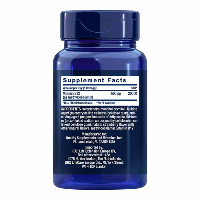 Süßungsmittel (Mannitol, Sorbitol), Füllstoff (mikrokristalline Cellulose/Cellulose-Gel), Trennmittel (Magnesiumsalze der Speisefettsäuren), Verdickungsmittel (vernetzte Carboxymethylcellulose/modifizierter Cellulosegummi), natürliches Erdbeeraroma und andere natürliche Aromen, Methylcobalamin (Vitamin B12).