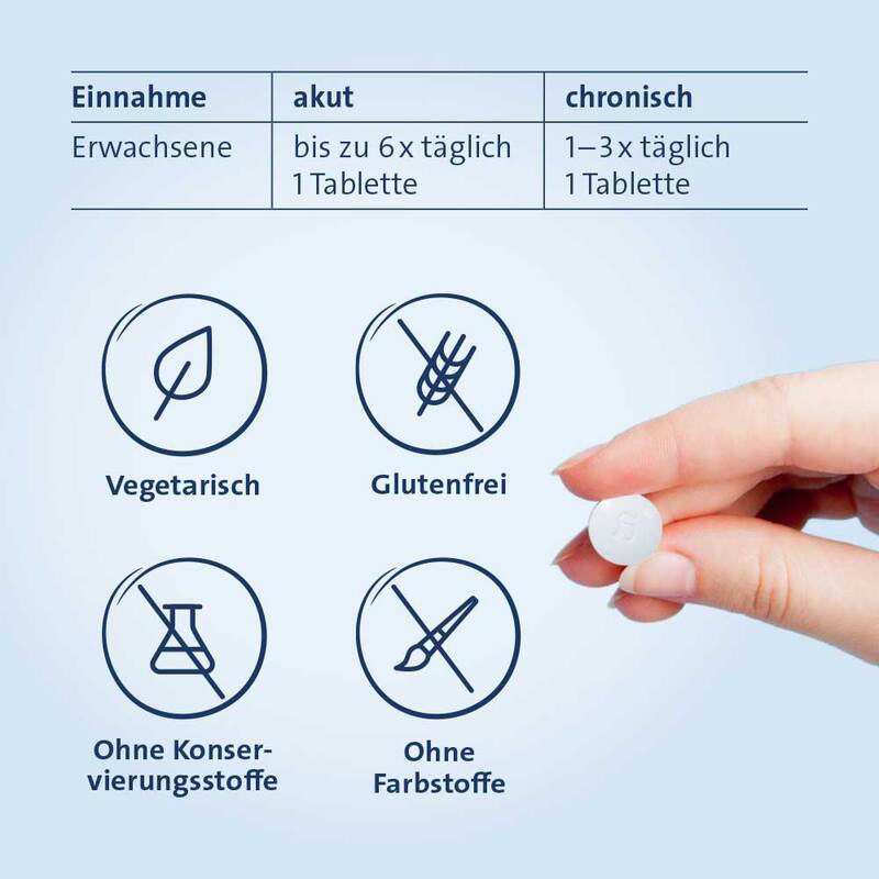 Bei chronischen Verlaufsformen lassen Erwachsene 1- bis 3-mal täglich je 1 Tablette im Mund zergehen. Bei Besserung der Beschwerden ist die Häufigkeit der Anwendung zu reduzieren.