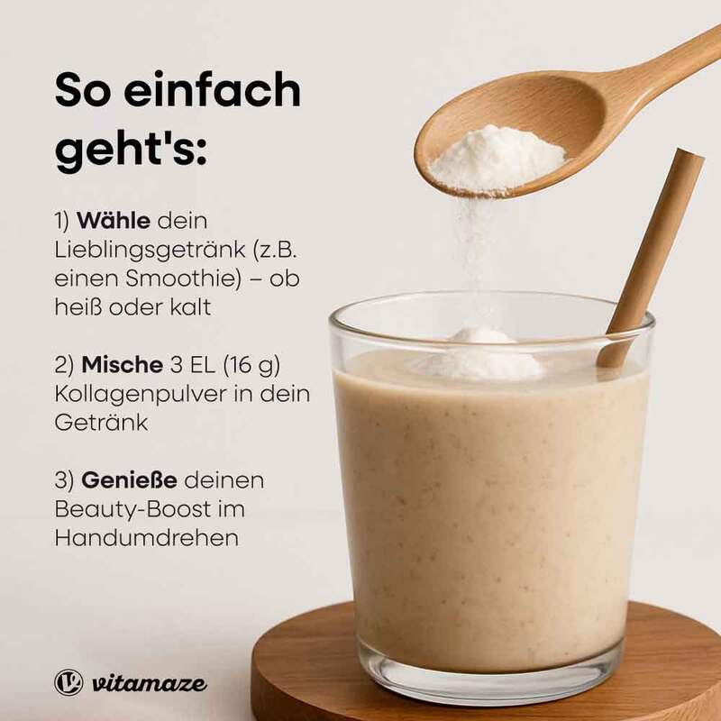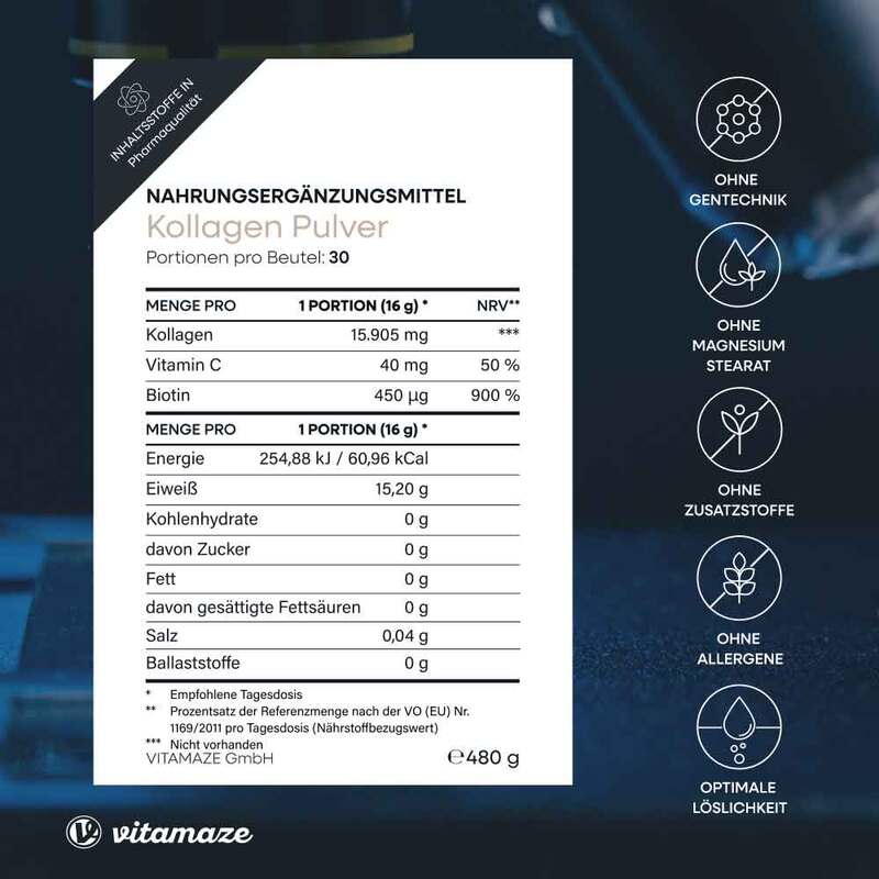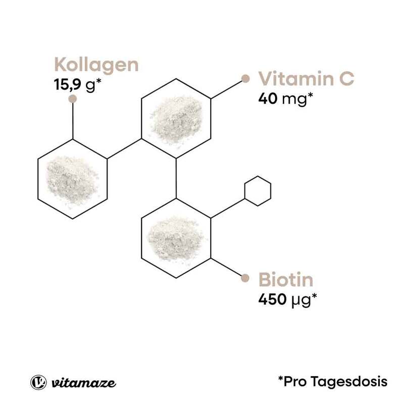 Kollagen-Hydrolysat von Rindern, Calcium L-Ascorbat, D-Biotin.