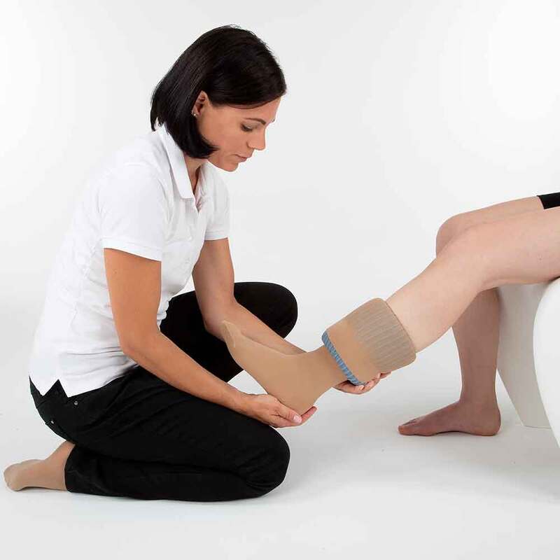 Abhängig von Art und Ausdehnung der Veränderungen kann die Kompressionstherapie mit Wadenstrümpfen, Schenkelstrümpfen, Strumpfhosen, Socken oder Bandagen durchgeführt werden. Die Beine werden an definierten Punkten ausgemessen um den graduierten Druckverlauf und somit die medizinische Wirksamkeit zu garantieren.