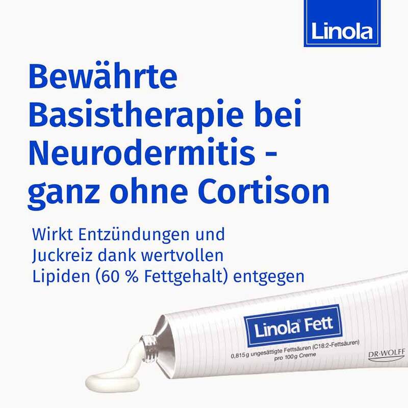Linola® Fett Wirkstoff: ungesättigte Fettsäuren. Anwendung: Zur unterstützenden Anwendung bei leichten bis mittelschweren Formen des atopischen Ekzems (Neurodermitis) im subakuten bis chronischen Stadium. Zu Risiken und Nebenwirkungen lesen Sie die Packungsbeilage und fragen Sie Ihre Ärztin, Ihren Arzt oder in Ihrer Apotheke.