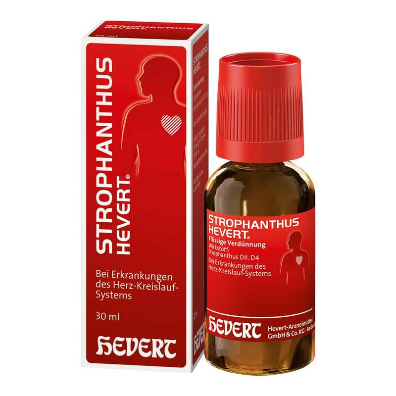 Strophanthus Hevert. Die Anwendungsgebiete leiten sich von den homöopathischen Arzneimittelbildern ab. Dazu gehören: Besserung des Befindens bei nervös bedingten funktionellen Herz-Kreislaufbeschwerden. Enthält 49 Vol.-% Alkohol. Zu Risiken und Nebenwirkungen lesen Sie die Packungsbeilage und fragen Sie Ihre Ärztin, Ihren Arzt oder in Ihrer Apotheke.