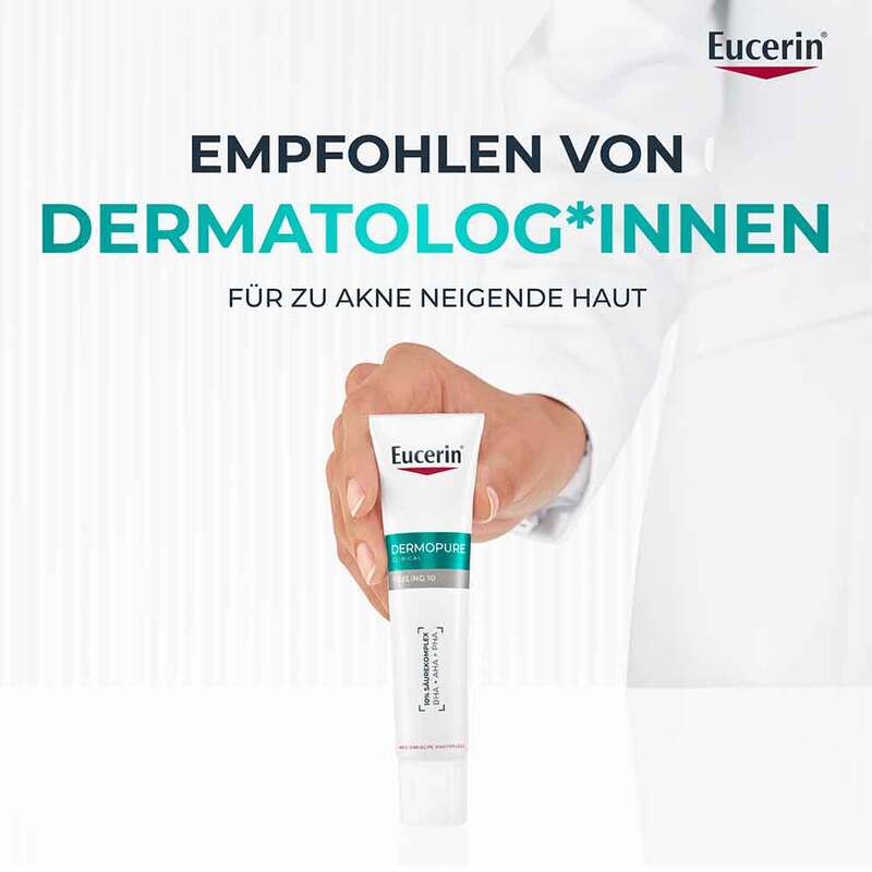 Für ein reines Hautbild können weitere Produkte aus der Eucerin® DermoPure Clinical Serie ergänzt werden. Kann leichte Hautirritationen verursachen. Bei anhaltender Hautirritation absetzen. Das Produkt kann die Sonnenempfindlichkeit der Haut erhöhen.
