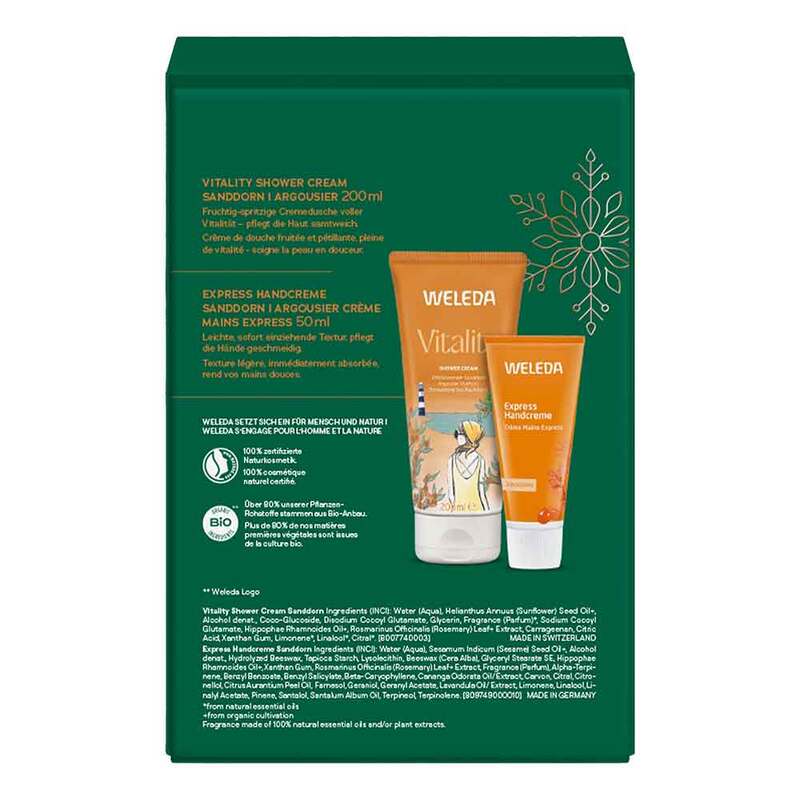 - Packungsinhalt: Weleda Vitality Shower Cream 200 ml, Weleda Express Sanddorn Handcreme 50 ml