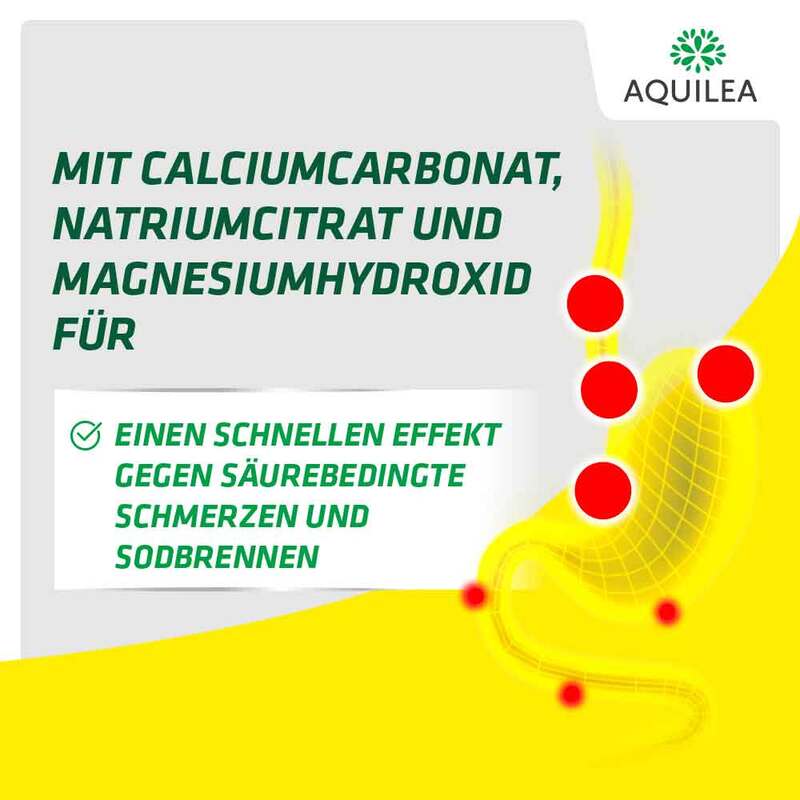 Calciumcarbonat, Magnesiumhydroxid, Natriumcitrat, Simethicon, Sorbitol, Aroma, Maltodextrin, Siliciumdioxid, Sucralose.