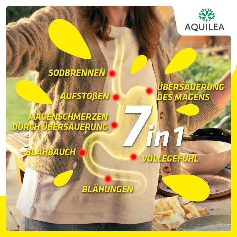Aquilea Verdauung Total wird verwendet zur Behandlung von Sodbrennen und Magenschmerzen, die durch Übersäuerung verursacht werden. Das Produkt ist auch nützlich bei der Behandlung von Symptomen im Zusammenhang mit gastroösophagealem Reflux und Dyspepsie (wie Verdauungsbeschwerden, Brennen im Magen, sowie Völlegefühl).