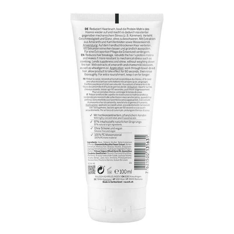- mit hochkonzentriertem, pflanzlichem Keratin, Extrakten aus Amaranth und Kamillenblüten sowie Weizenkeimöl