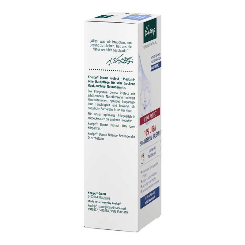 Der parfümfreie Intensivbalsam mit schützendem Nachtkerzenöl, beruhigendem Panthenol, Vitamin E und 10% feuchtigkeitsspendendem Urea pflegt spürbar raue und rissige Haut, mindert Juckreiz und Rötungen.