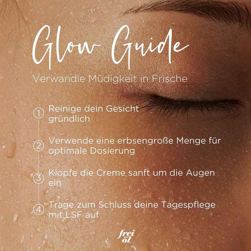 Morgens und abends auf die Haut um das Auge auftupfen und sanft einklopfen.