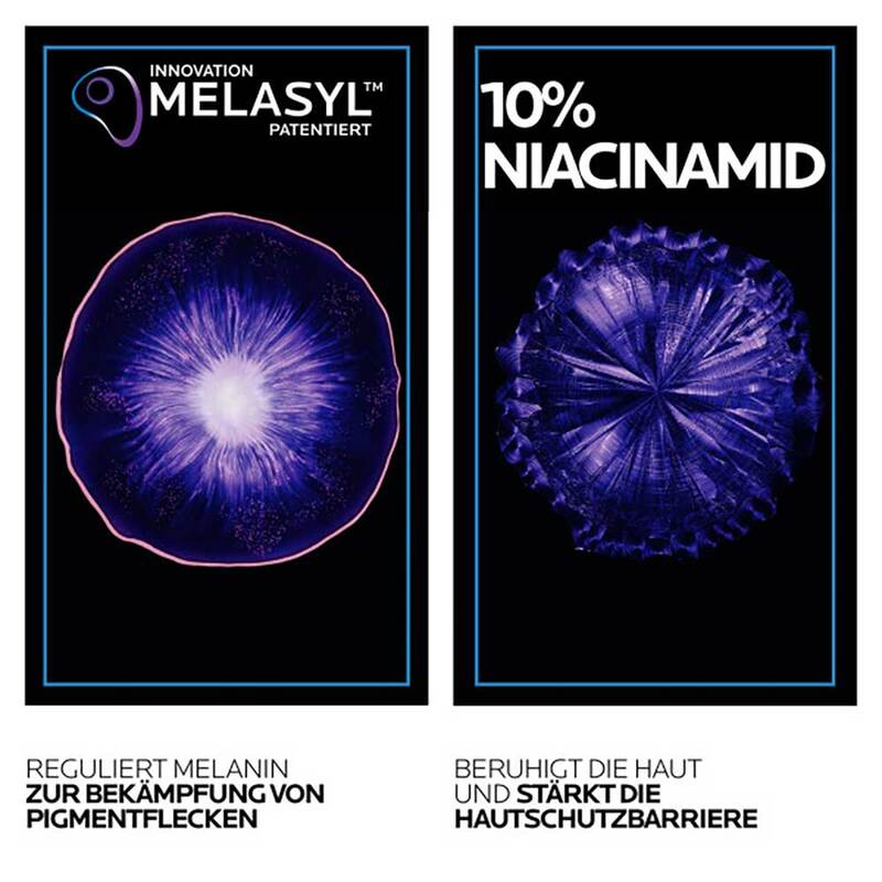 - Anti-Pigmentflecken-Serum mit patentiertem Melasyl und 10 % Niacinamid