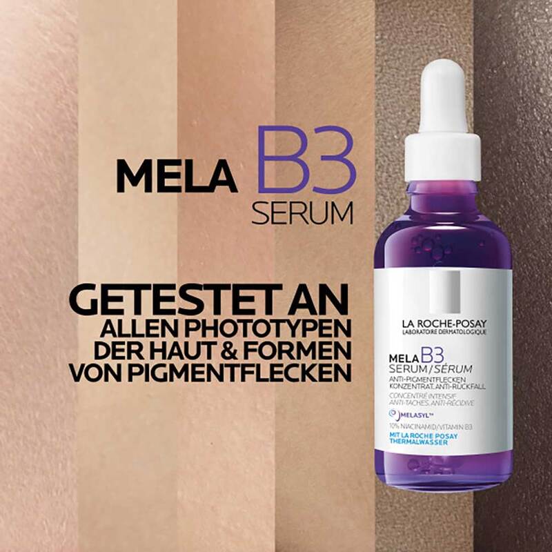 Das Anti-Pigmentflecken-Serum Mela B3 von La Roche Posay fängt überschüssiges Melanin ab, bevor dunkle Flecken auf der Haut überhaupt entstehen können. Dabei bewahrt und optimiert das patentierte Melasyl jeden natürlichen Hautton.