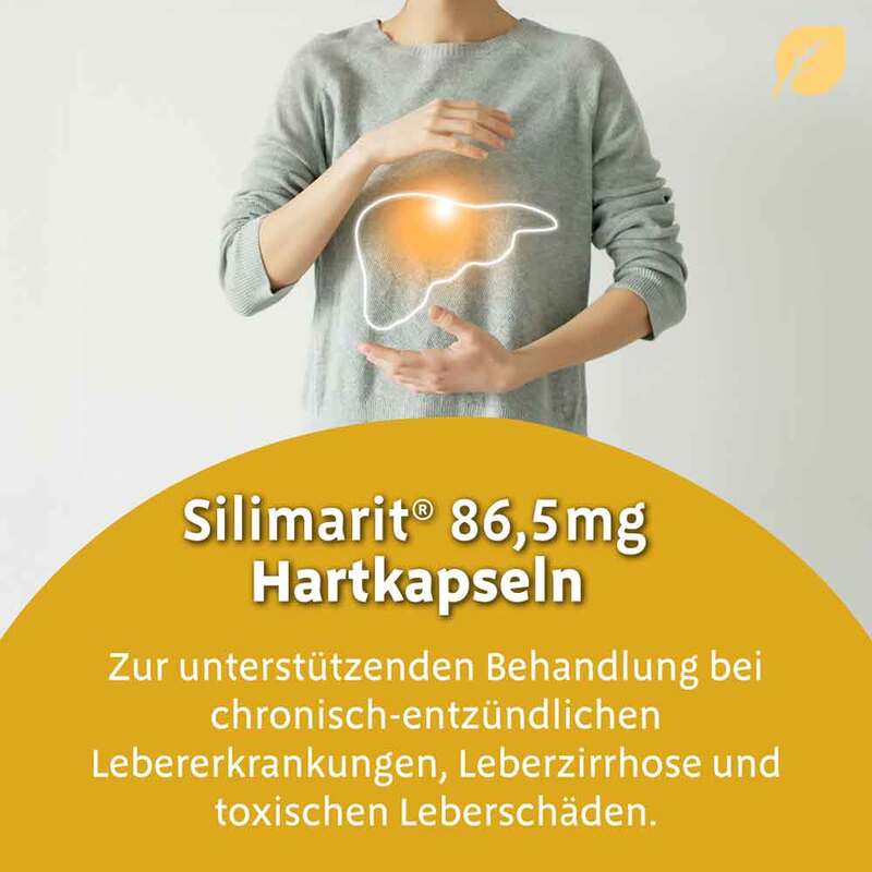 Silimarit® 86,5 mg Hartkapseln Wirkstoff: Trockenextrakt aus Mariendistelfrüchten. Zur unterstützenden Behandlung bei chronisch-entzündlichen Lebererkrankungen, Leberzirrhose und toxischen Leberschäden. Hinweis: Die Arzneimitteltherapie ersetzt nicht die Vermeidung der die Leber schädigenden Ursachen (z. B. Alkohol). Beim Auftreten von Gelbsucht (hell- bis dunkelgelbe Hautverfärbung, Gelbfärbung des Augenweiß) oder einer Farbveränderung des Urins oder des Stuhls ist unverzüglich ein Arzt aufzusuchen. Dieses Arzneimittel ist nicht zur Behandlung von akuten Vergiftungen geeignet. Enthält Lactose. Zu Risiken und Nebenwirkungen lesen Sie die Packungsbeilage und fragen Sie Ihre Ärztin, Ihren Arzt oder in Ihrer Apotheke. BIONORICA SE | 92318 Neumarkt Mitvertrieb: PLANTAMED Arzneimittel GmbH | 92318 Neumarkt Nur in der Apotheke erhältlich. Stand: 09|25