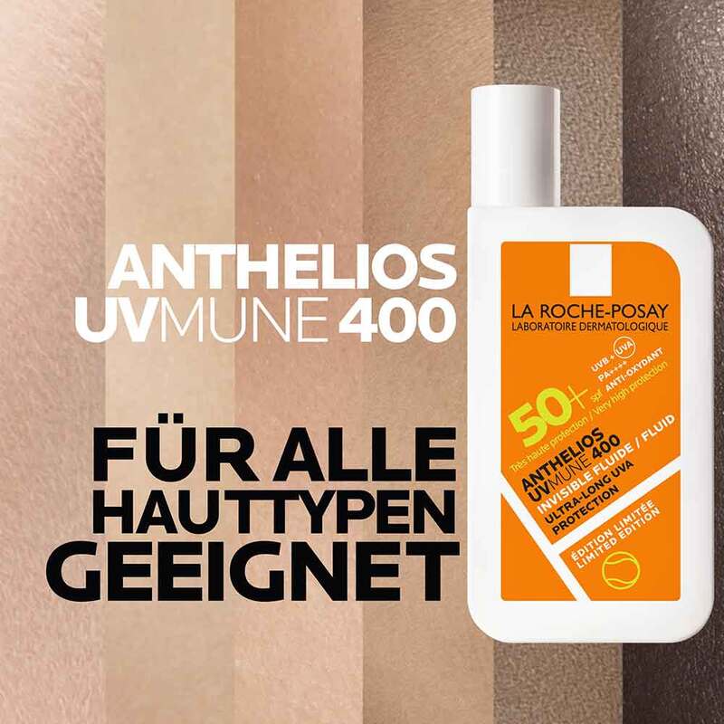 Jetzt als Tennis-Limited Edition im neuen Design: Feel the Heat, not the Burn - Das Anthelios Invisible Fluid UVMune 400 LSF 50+ von La Roche Posay ist ein Sonnenfluid für sensible und zu Sonnenallergie neigende Gesichtshaut.
