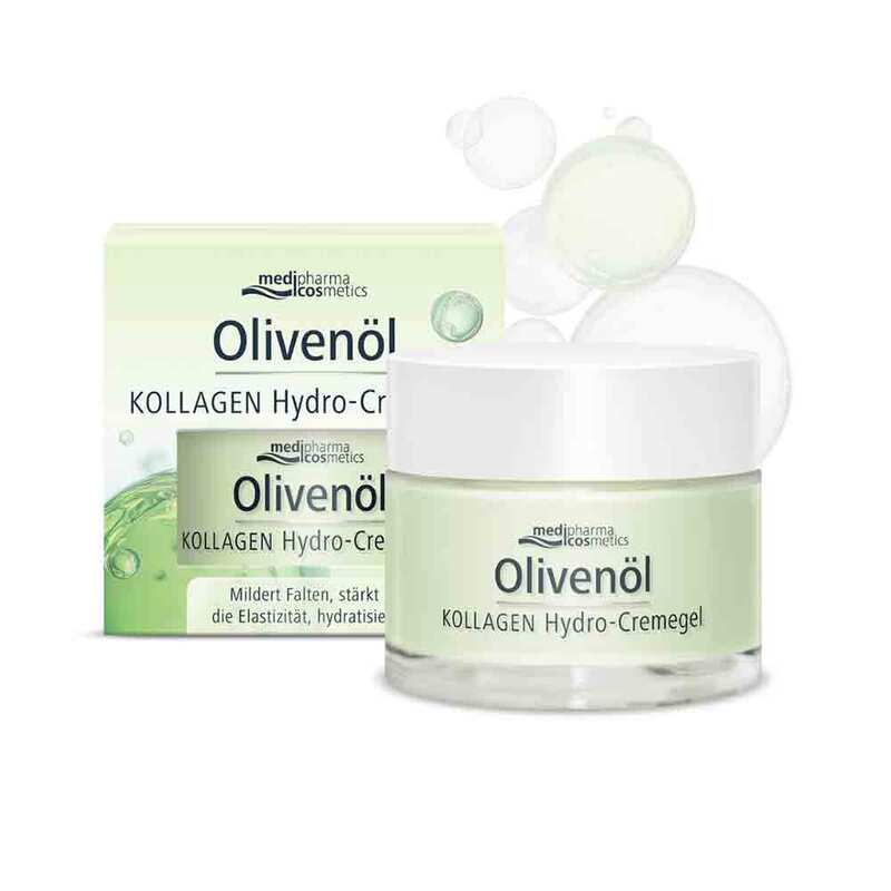Kollagen ist ein zentrales Strukturprotein der Haut und maßgeblich für ihre Festigkeit, Elastizität und Spannkraft verantwortlich. Es bildet sozusagen das „Stützgerüst“ der Haut und sorgt dafür, dass sie glatt und prall wirkt. Mit zunehmendem Alter — bereits ab etwa 25 Jahren — nimmt die körpereigene Kollagenproduktion der Haut ab. Das Olivenöl Kollagen Hydro-Cremegel von medipharma cosmetics setzt auf eine leichte, erfrischende Textur, die der Haut Feuchtigkeit schenkt und Falten mildern kann.