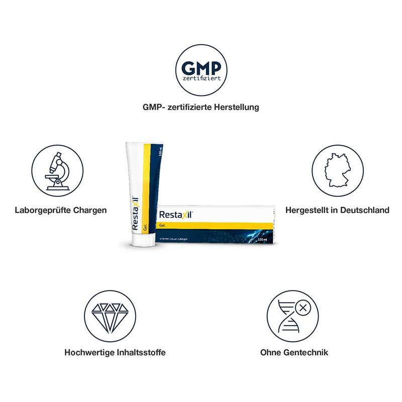 Zieht schnell ein, klebt nicht und eignet sich ideal zum Einmassieren. Restaxil® Gel ist dermatologisch geprüft, hautverträglich und für die regelmäßige Anwendung geeignet.