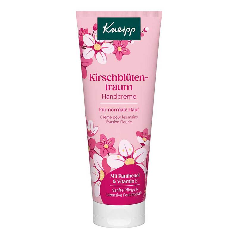 Die Kneipp Kirschblütentraum Handcreme mit dem Pflege-Öl-Komplex aus Glycerin, Panthenol und Mandelöl spendet intensive Feuchtigkeit und pflegt sanft. Mit hochwertigem Kirschblütenextrakt und dem sanft fruchtig-floralen Duft. Zieht schnell ein - ohne zu fetten.
