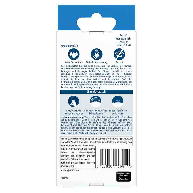 Das Medizinprodukt dient als mechanische Barriere für kleinere, oberflächliche Wunden und verfügt über ein saugfähiges Pad, das Juckreiz, Rötungen und Reizungen lindert. Das Pflaster besteht aus einem ultradünnen, saugfähigen Hydrokolloid-Material. Es lindert Juckreiz innerhalb weniger Minuten, reduziert Schwellungen und Rötungen und schützt die Haut vor dem Kratzen und Infektionen. Dank der Hydrokolloid-Technologie schafft das Pflaster ein feuchtes Wundmilieu, das den natürlichen Regenerationsprozess der Haut unterstützt und Narbenbildung vorbeugt.